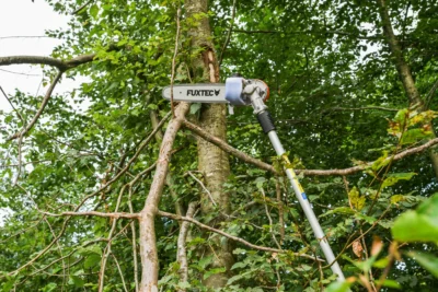 Élagueuse orientable : Perche inclinable sur plusieurs paliers pour une coupe précise des branches.