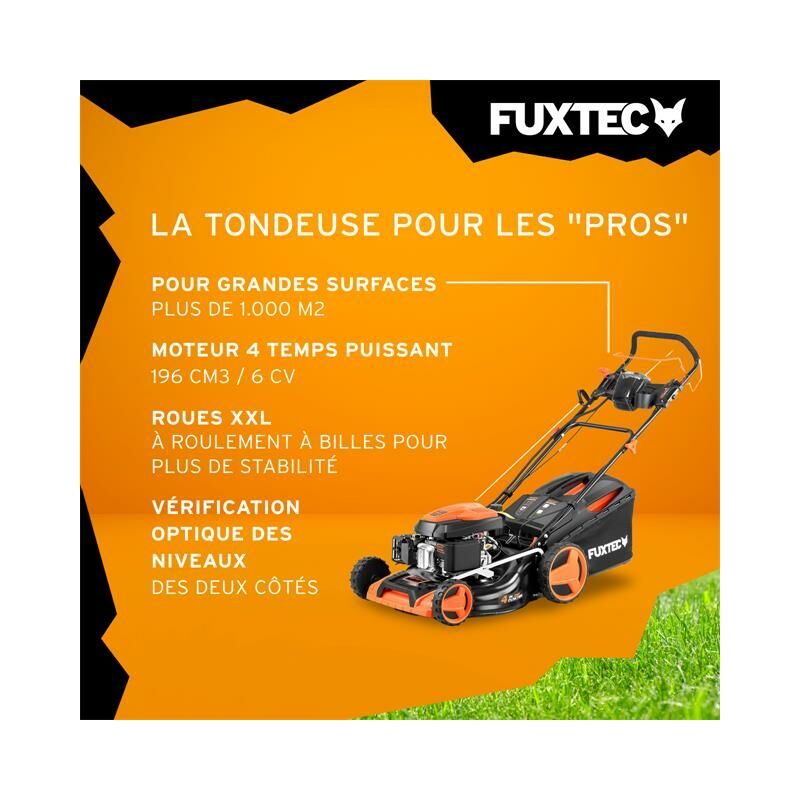 Fuxtec – Tondeuse thermique 51cm FXRM5196ESPRO – Démarrage électrique – 6CV 196cm³ – Bac 60L – Hauteur de coupe 25-75mm – Éjection latérale