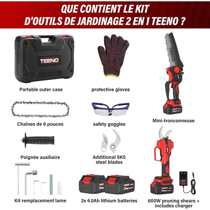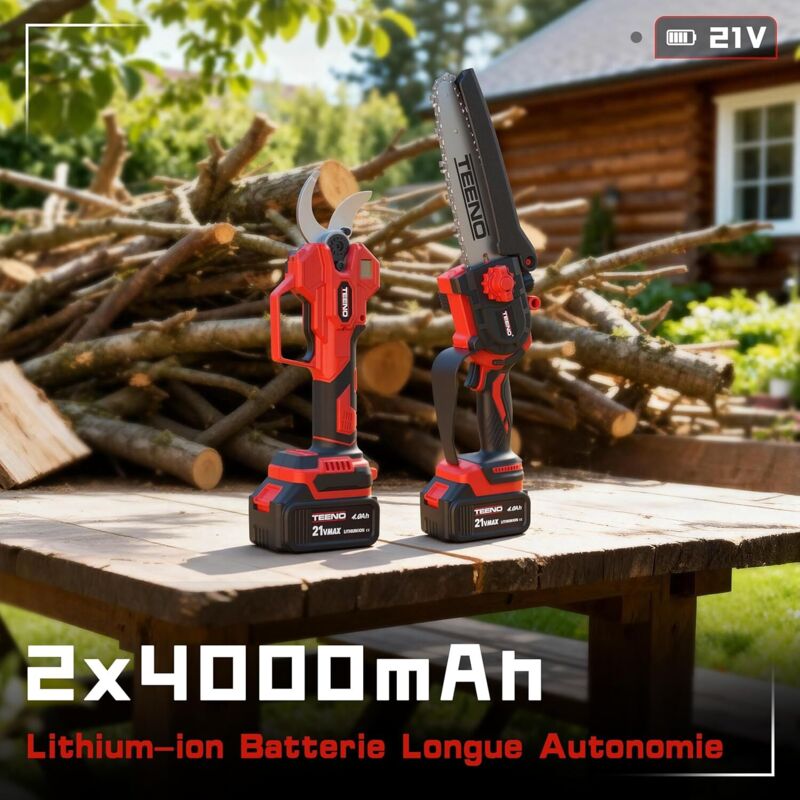 Kit de Jardinage Sans Fil TEENO 21V : Le Duo de Choc pour un Entretien Sans Effort